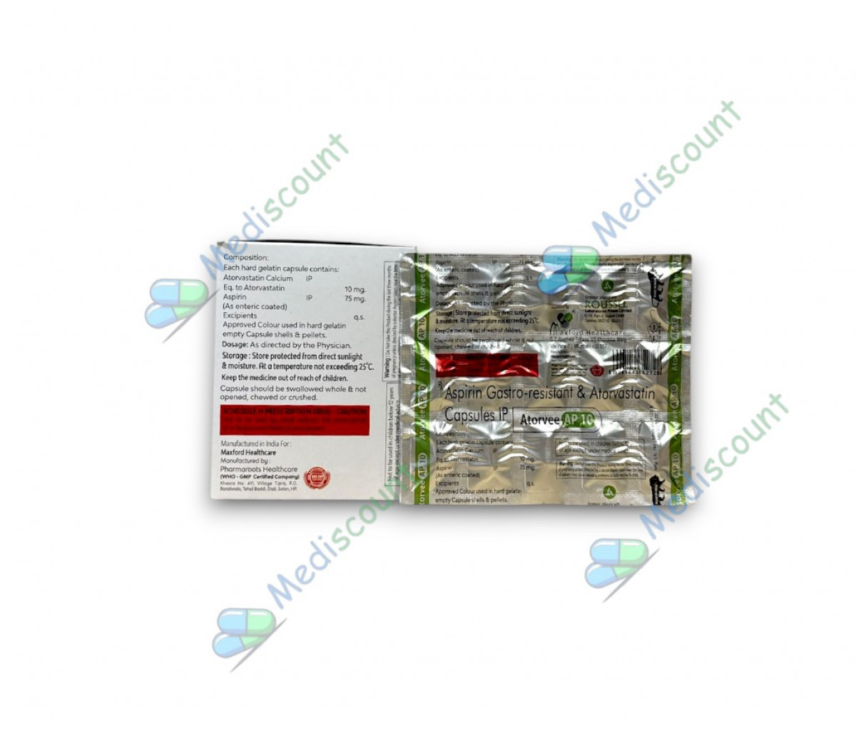 75 mg of Atorvee AP/100 mg A combination of two medications called a capsule is used to prevent heart attacks and strokes. 75 mg of Atorvee AP/100 mg A combination medication called a capsule is used to stop heart attacks. It contains the medication atorvastatin, which lowers the levels of "bad" cholesterol (LDL) and increases "good" cholesterol (HDL) in the blood. Atherosclerosis, or narrowing of the blood vessels, can be brought on by high cholesterol levels. Reducing cholesterol helps you stay healthy for longer and lowers your risk of heart disease and stroke.