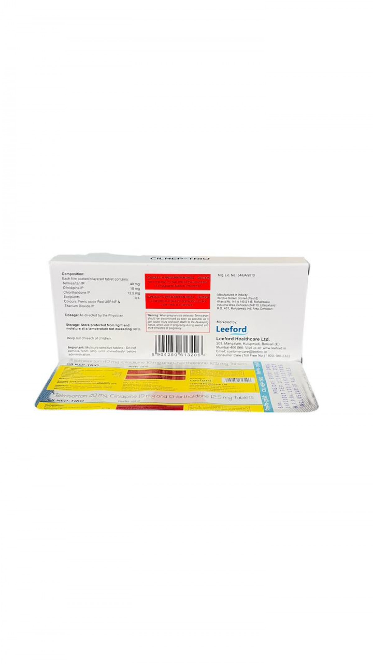 Composition Cilinidipine 10 mg, Telmisartan 40 mg & Chlorthalidone 12.5 mg (Alu - Alu)